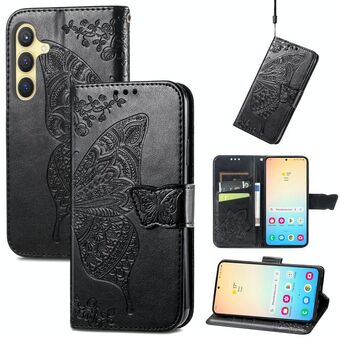 For Samsung Galaxy S24 5G Butterfly Love Flower Embossed Leather Phone Case(Black)