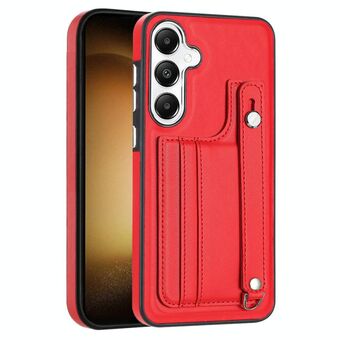 For Samsung Galaxy S24 5G Shockproof Leather Phone Case with Wrist Strap(Red)