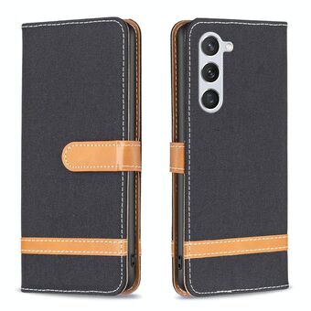For Samsung Galaxy S24 5G Color Block Denim Texture Leather Phone Case(Black)