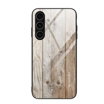 For Samsung Galaxy S24 5G Wood Grain Glass Phone Case(Grey)