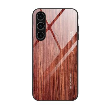 For Samsung Galaxy S24 5G Wood Grain Glass Phone Case(Coffee)
