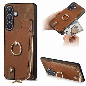 For Samsung Galaxy S24 5G Cross Leather Ring Vertical Zipper Wallet Back Phone Case(Brown)