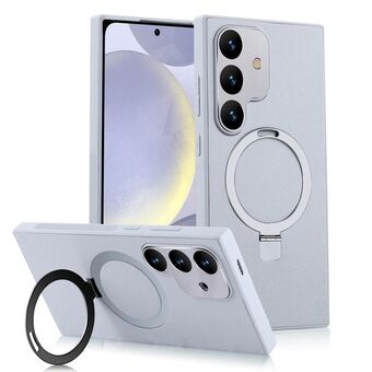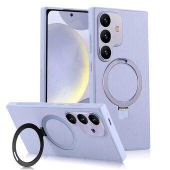 For Samsung Galaxy S24 5G MagSafe Rotation Holder PC + Leather Phone Case(Purple)