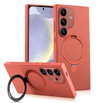 For Samsung Galaxy S24 5G MagSafe Rotation Holder PC + Leather Phone Case(Orange)
