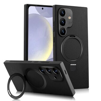 For Samsung Galaxy S24 5G MagSafe Rotation Holder PC + Leather Phone Case(Black)