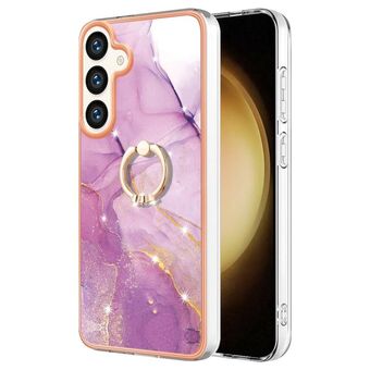 For Samsung Galaxy S24 5G Electroplating Marble IMD TPU Phone Case with Ring Holder(Purple 001)