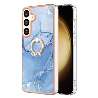 For Samsung Galaxy S24 5G Electroplating Marble Dual-side IMD Phone Case with Ring(Blue 018)