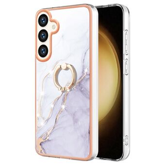 For Samsung Galaxy S24 5G Electroplating Marble IMD TPU Phone Case with Ring Holder(White 006)