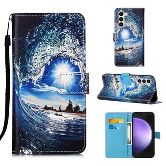 For Samsung Galaxy S24 5G Colored Drawing Pattern Plain Weave Leather Phone Case(Waves And Sun)