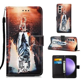 For Samsung Galaxy S24 5G Colored Drawing Pattern Plain Weave Leather Phone Case(Cats And Tigers)