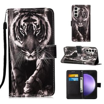 For Samsung Galaxy S24 5G Colored Drawing Pattern Plain Weave Leather Phone Case(Black And White Tiger)