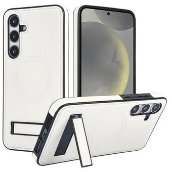 For Samsung Galaxy S24 5G Retro Leather Invisible Stand MagSafe Phone Case(White)