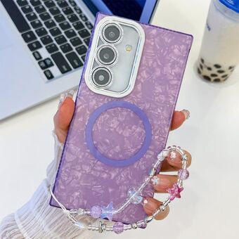 Θήκη τηλεφώνου Samsung Galaxy S24 FE 5G με υφή επιμετάλλωσης, βραχιόλι, MagSafe, TPU και μεμβράνη φακού με γκλίτερ (Λευκά Κύματα Νερού)