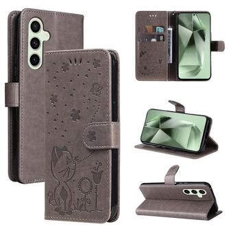 For Samsung Galaxy S24 FE 5G Cat and Bee Embossed Flip Leather Phone Case(Grey)