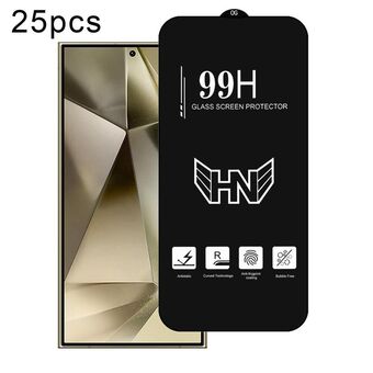 For Samsung Galaxy S24 Ultra 5G 25pcs 0.18mm High Aluminum Large Arc Full Screen Tempered Glass Film, Support Fingerprint Unlocking