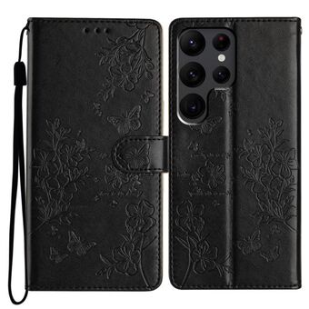 For Samsung Galaxy S24 Ultra 5G Butterflies and Flowers Leather Phone Case(Black)