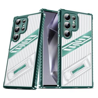 For Samsung Galaxy S24 Ultra 5G Plating Holder PC Hybrid TPU Phone Case(Dark Green)