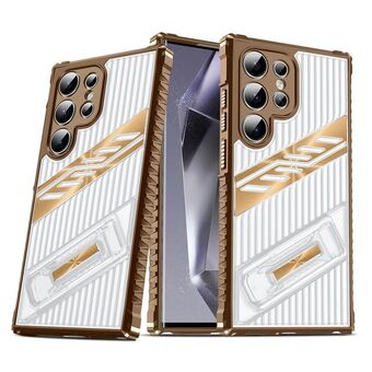 For Samsung Galaxy S24 Ultra 5G Plating Holder PC Hybrid TPU Phone Case(Desert Gold)