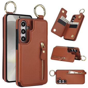 Για Samsung Galaxy S24 5G Litchi υφή φερμουάρ διπλή πόρπη κάρτα τσάντα υπόθεση τηλεφώνου (καφέ)