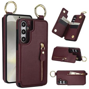 Για Samsung Galaxy S24 5G Litchi υφή φερμουάρ διπλή πόρπη κάρτα τσάντα υπόθεση τηλεφώνου (μωβ)