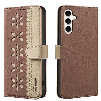 For Samsung Galaxy S25 / S24 5G Splicing Color Hollow Flower Pattern RFID Leather Phone Case(Brown)