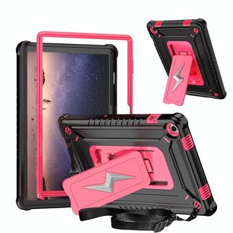 For Samsung Galaxy Tab A9+ Armor Bolt Shape Holder Silicone Hybrid PC Tablet Case(Black Rose Red)