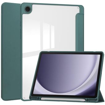 Για Samsung Galaxy Tab A9+ Ακρυλικό 3 πτυσσόμενα Smart δερμάτινη θήκη tablet με υποδοχή για στυλό (σκούρο πράσινο)