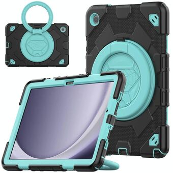 For Samsung Galaxy Tab A9+ Spider Rotation Handle Silicone Hybrid PC Tablet Case(Black Light Blue)