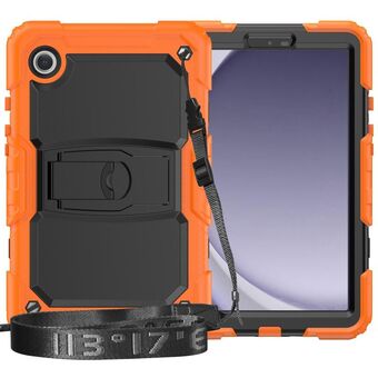 For Samsung Galaxy Tab A9+ Silicone Hydric PC Tablet Case with Shoulder Strap & Holder(Orange)