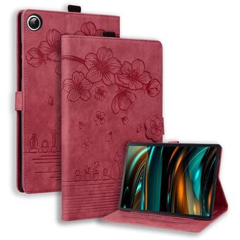 Θήκη ταμπλέτας Samsung Galaxy Tab A9 από δέρμα με ανάγλυφο σχέδιο καρτούν Sakura Cat (Πράσινο)