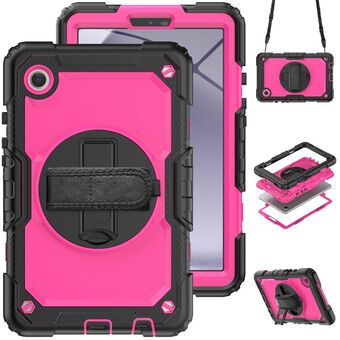 Για Samsung Galaxy Tab A9 σιλικόνης υβριδική θήκη tablet PC με θήκη & λουράκι ώμου (πολύχρωμο ροζ)