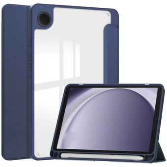 Για Samsung Galaxy Tab A9 Ακρυλικό 3 πτυσσόμενα δερμάτινη θήκη tablet με υποδοχή για στυλό (σκούρο μπλε)