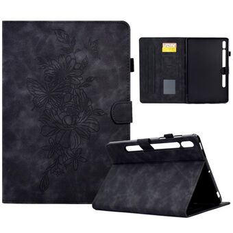 Θήκη Smart Tablet από Δέρμα με ανάγλυφο σχέδιο Παιονίας και Πεταλούδας για Samsung Galaxy Tab S7 / S8 (Καφέ)
