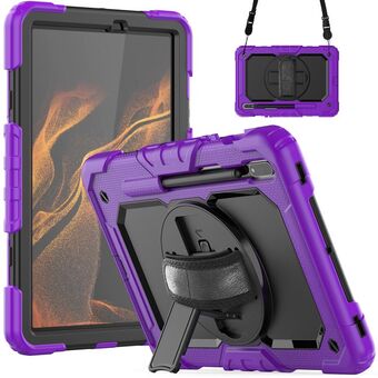 Για Samsung Galaxy Tab S8 11 ιντσών SM-X700 σιλικόνη + PC θήκη tablet με λουράκι ώμου (μωβ+μαύρο)