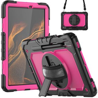 Για Samsung Galaxy Tab S8 11 ιντσών SM-X700 σιλικόνη + PC θήκη tablet με λουράκι ώμου (μαύρο + ροζ κόκκινο)