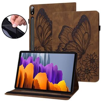 Θήκη ταμπλέτας Samsung Galaxy Tab S9 Ultra / S8 Ultra από δέρμα με ανάγλυφο σχέδιο πεταλούδας και γάτας (Μωβ)