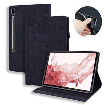 Θήκη δερμάτινη για Samsung Galaxy Tab S10 Ultra / S9 Ultra με ανάγλυφο σχέδιο Tree Life και περιστροφή (Μαύρο)