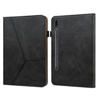 For Samsung Galaxy Tab S7+ T970 / S7 FE T730 Solid Color Embossed Striped Leather Tablet Case(Black)