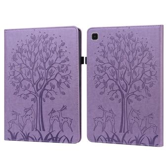 Για Samsung Galaxy Tab A7 Lite T220 δέντρο & ελάφια μοτίβο ανάγλυφη δερμάτινη θήκη tablet (μωβ)