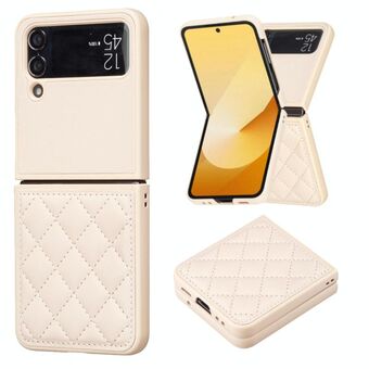For Samsung Galaxy Z Flip4 Rhombus-shaped Leather Back Cover Phone Case(Beige)