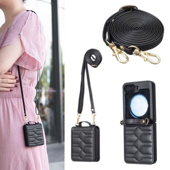 For Samsung Galaxy Z Flip5 V-shaped Crossbody Lanyard Leather Phone Case(Black)