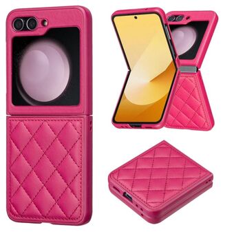 For Samsung Galaxy Z Flip6 Rhombus-shaped Leather Back Cover Phone Case(Rose Red)