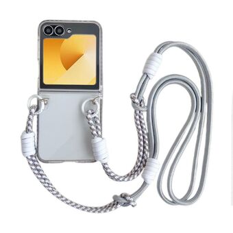 For Samsung Galaxy Z Flip5 TPU Macaron Hinge Phone Case with 3 in 1 Crossbody Rope(Silver)