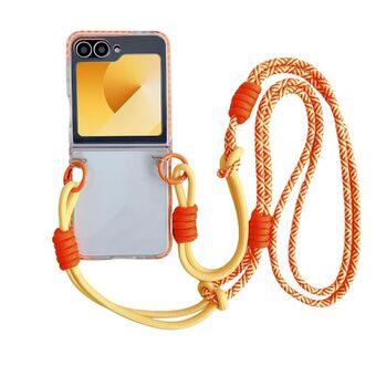For Samsung Galaxy Z Flip5 TPU Macaron Hinge Phone Case with 3 in 1 Crossbody Rope(Yellow)