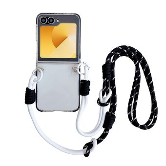 For Samsung Galaxy Z Flip6 TPU Macaron Hinge Phone Case with 3 in 1 Crossbody Rope(White)
