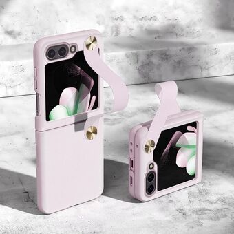 For Samsung Galaxy Z Flip6 Leather Ultra-thin PC Wristband Full Coverage Phone Case(Pink)