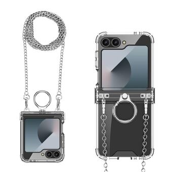 For Samsung Galaxy Z Flip6 GKK Clear Airbag Hinge Full Coverage Phone Case with Ring / Metal Chain(Silver) (GKK)