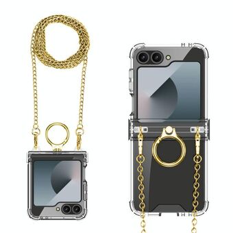 For Samsung Galaxy Z Flip6 GKK Clear Airbag Hinge Full Coverage Phone Case with Ring / Metal Chain(Gold) (GKK)