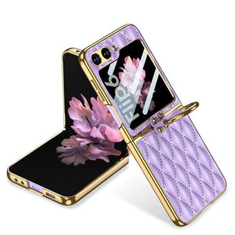 For Samsung Galaxy Z Flip6 GKK Integrated Plating Diamond Texture PU Phone Case with Ring(Purple) (GKK)
