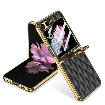 For Samsung Galaxy Z Flip6 GKK Integrated Plating Diamond Texture PU Phone Case with Ring(Black) (GKK)